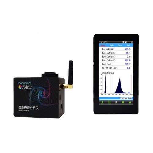 UVS-250集光譜、紫外輻照度、紫外UVA、紫外UVB、 紫 外UVC、波長等 測量功能參數(shù)于一體,光譜分析法是理想的數(shù)字積分方法,不受被測光源光譜分布和探測器響應(yīng)帶寬函數(shù)的影響,是精度最 高的紫外輻射照度的測量方法。實(shí)現(xiàn)無線遠(yuǎn)程操作,廣泛應(yīng)用于紫外光 源、消毒殺菌、光照治療、老化、探傷、光刻、光固化、育種植物栽培、日光紫外指數(shù)評價等領(lǐng)域的測量。